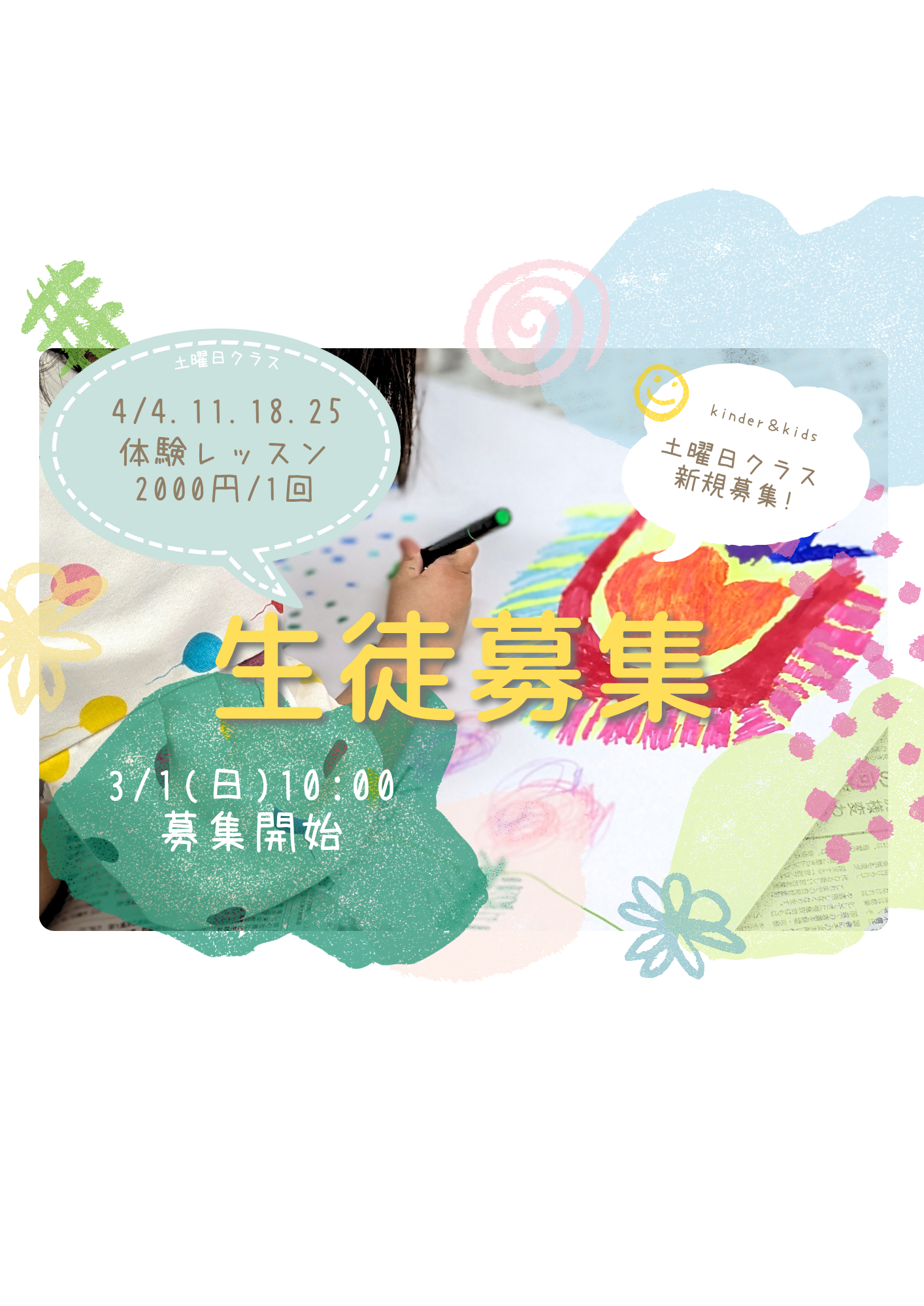 こども達の個性を丸ごと受け止めるのびのび描くお教室。アートあそびを通して絵画技法やアイデア、創造力を学びます